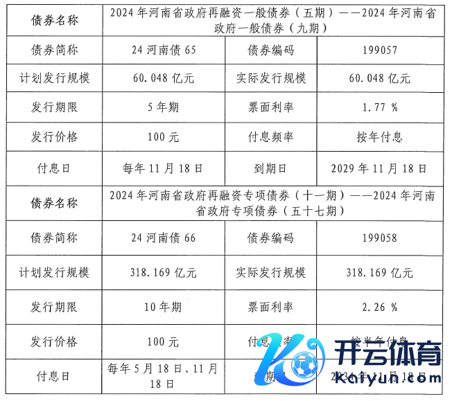 其中,2024年河南省政府再融资一般债券(五期),期限为5年,金额60.048亿元。2024年河南省政府再融资专项债券(十一期)期限为10年,金额318.169亿元。文献通晓,本次再融资专项债券的318.169亿元将一升引于置换存量隐性债务。