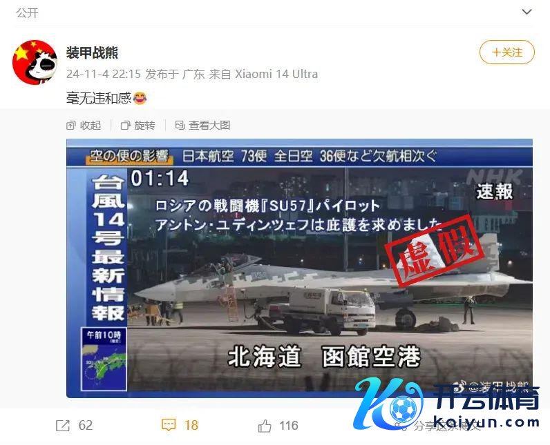 网传截图右下角显现有微博用户的水印。搜索关系账号,不错找到一张与截图稀疏同样的图片。图片中的翰墨显现为日文,发布技艺为11月4日,彼时2024年珠海航展尚未开幕。