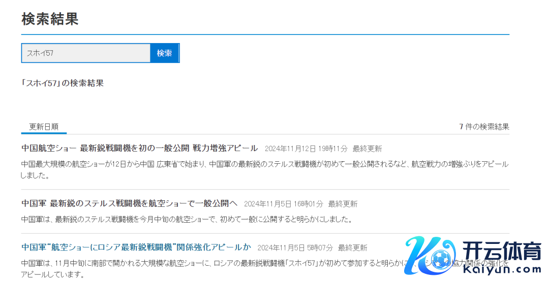 NHK网站上搜索枢纽词“苏-57”,显现有3篇关系的报谈,先后发布于11月5日和11月12日,报谈中莫得说起任何与“俄罗斯飞翔员驾驶战争机降落日本”关系的实质。