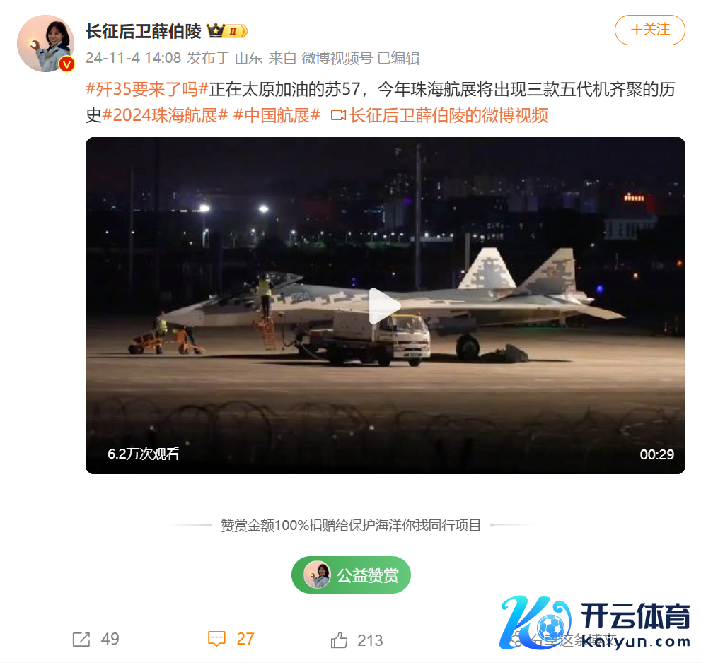 微博军事博主@长征后卫薛伯陵11月4日下昼2时08分发布视频,称“苏-57正在太原加油”。从画面实质判断,@长征后卫薛伯陵发布的视频画面与网传图片稀疏同样,网传图片疑似是对视频展示的画面进行了后期处罚。