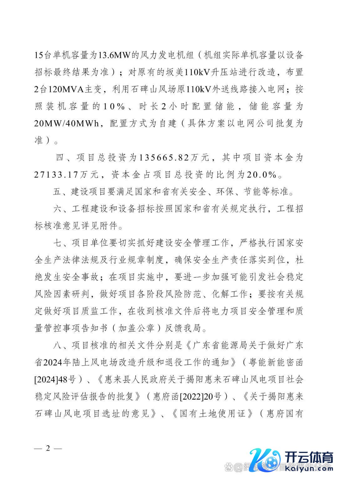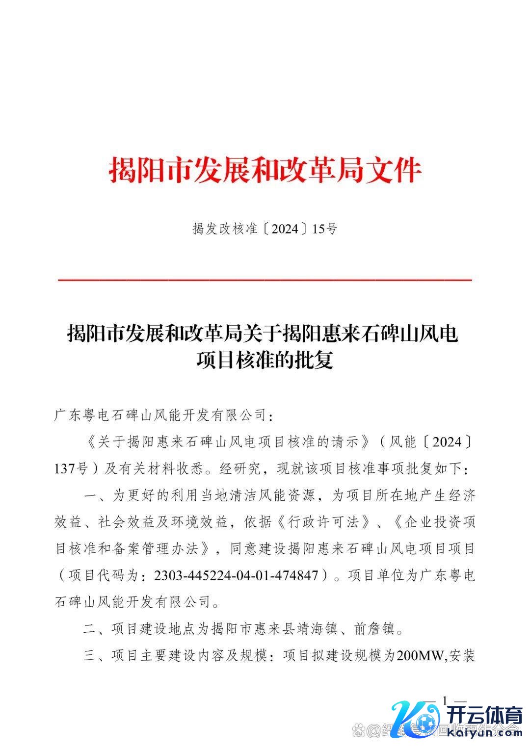 近日,从揭阳市发展和阅兵局获悉,揭阳惠来石碑山风电方式取得揭阳市发展和阅兵局核准批复开yun体育网,该方式蓄意装机容量200MW。在旧址167个机位点拟中式15个机位点,装置15台单机容量为13.6MW的风力发电机组(机组实质单机容量以斥地招标最终成果为准)。