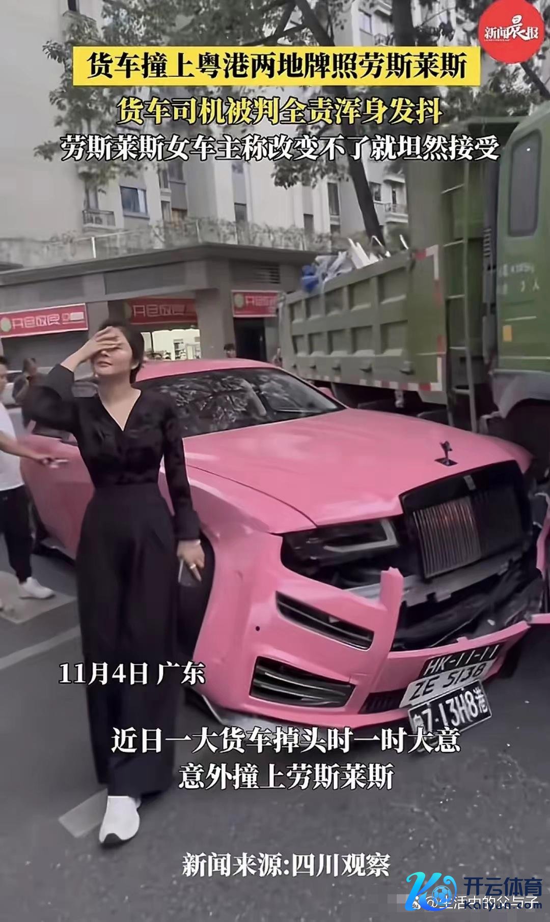 2024年11月5日,有网友在酬酢平台发布了一段视频,广州一辆粉色劳斯莱斯被撞,大货车被判全责。