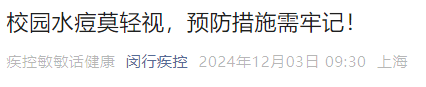 ▪ 12月3日,闵行疾控发布了蹙迫教导:校园水痘莫鄙夷,驻防法度需谨记!