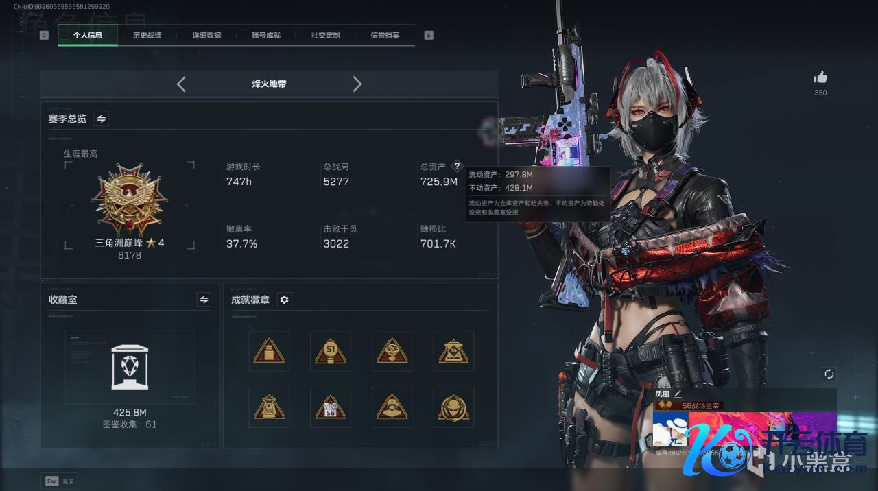 楼主双子测试时入坑三角洲,主PC。从上线以来一直保执着每月粗略6~80小时的游戏时长,总游戏时长粗略1000小时驾驭。