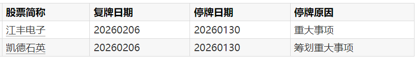 A股复牌教唆:2股当天复牌A股复牌教唆:2股当天复牌