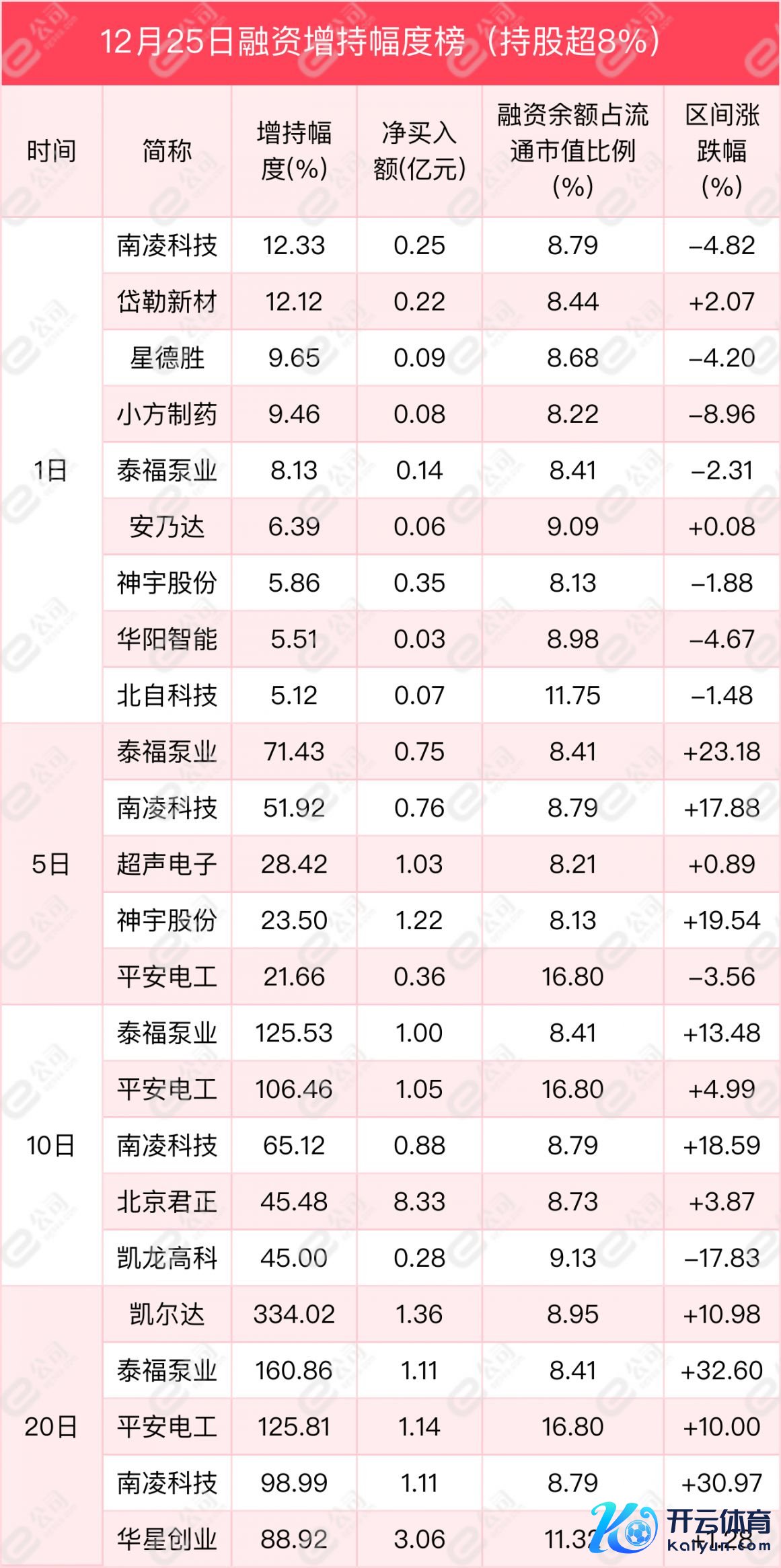 从增减捏幅度来看,融资余额占运动股比例超8%的个股中,南凌科技(300921)、岱勒新材(300700)、星德胜(603344)获融资增捏幅度居前,辞别为12.33%、12.12%、9.65%。
