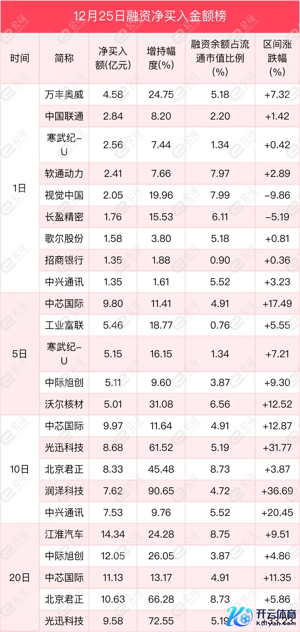 从交易金额来看,万丰奥威(002085)、中国联通、寒武纪-U获融资净买入金额居前,辞别为4.58亿元、2.84亿元、2.56亿元,增捏幅度辞别为24.75%、8.2%、7.44%。