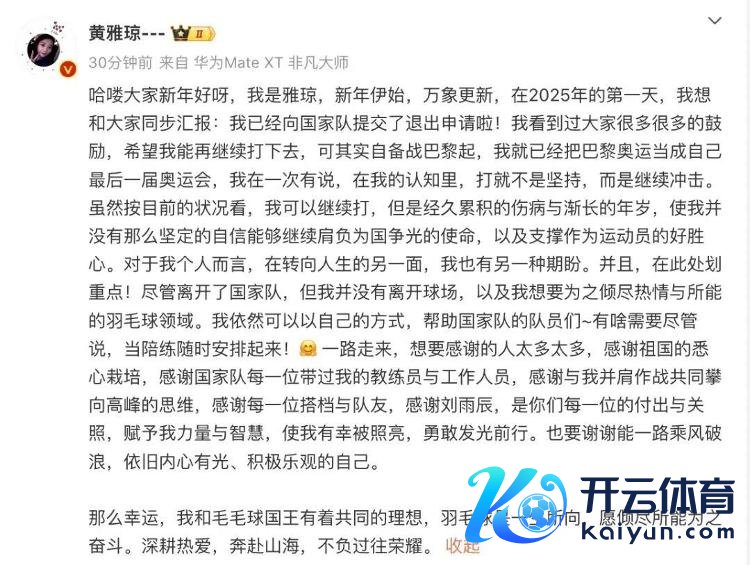 2025年1月1日,奥运冠军黄雅琼在酬酢媒体发文称,依然向国度队提交了退出苦求。