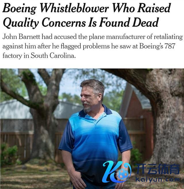 △《纽约 * 时报》网站报谈:2024 年 3 月,曾在南卡罗来纳州波音公司担任质料司理,并曝光公司质料规模问题的约翰 · 巴尼特被发现疑似死于自尽。