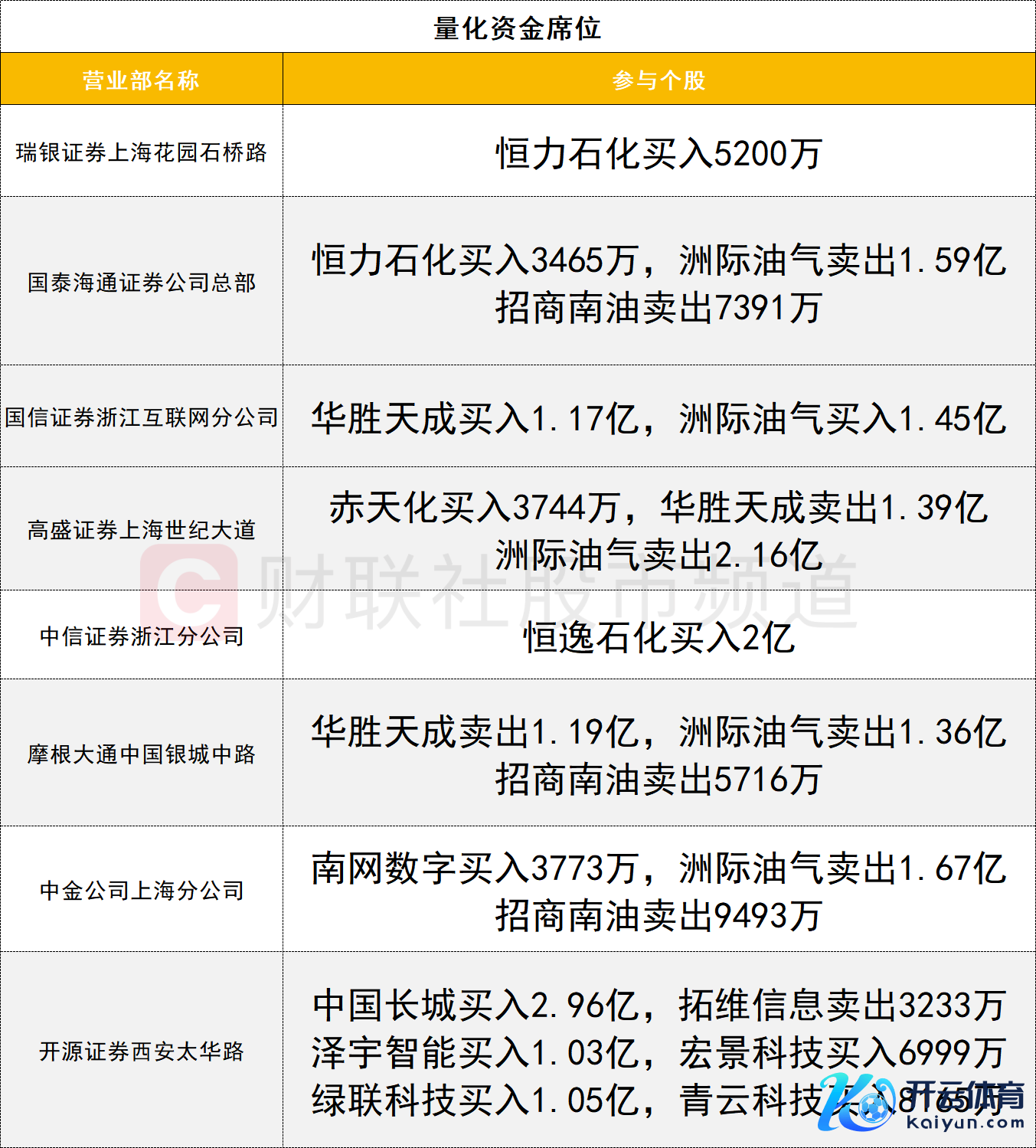 量化资金活跃度较高云开体育,中国长城获一家量化(开源证券西安太华路)买入2.96亿。