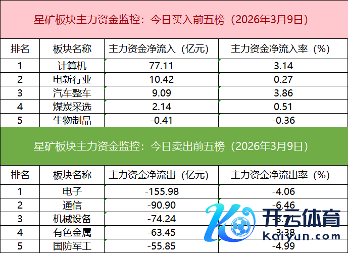 板块资金流出方面,电子板块主力资金净流出居首。