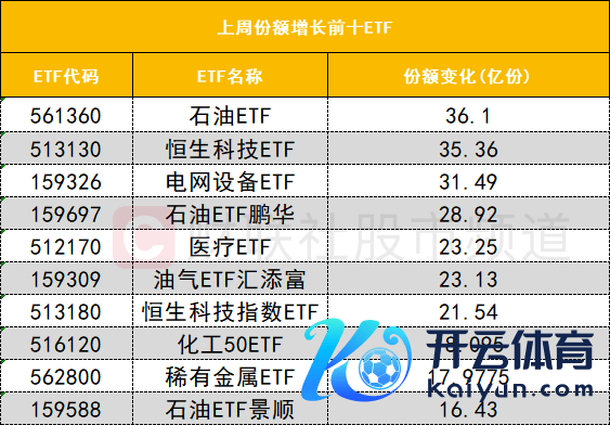 在上周份额增长前十ETF中,石油ETF(561360)上周份额增长36.1亿份位居首位;恒生科技ETF(513130)上周份额增长35.36亿份位居次席。