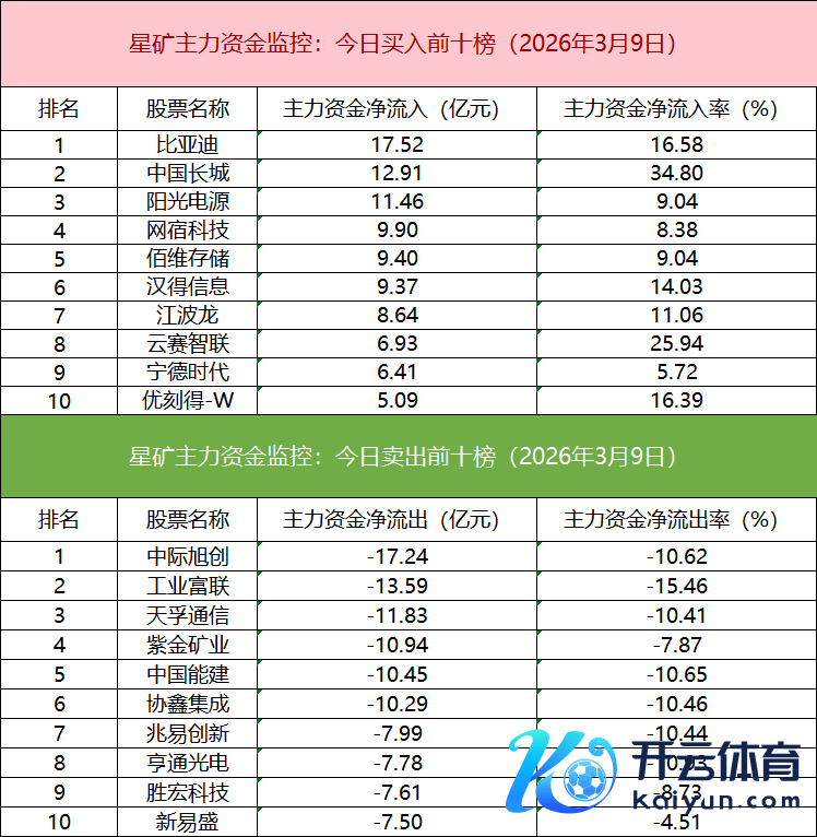 从个股主力资金监控数据来看,主力资金净流入前十的个股所属板块较为散布,比亚迪净流入居首。