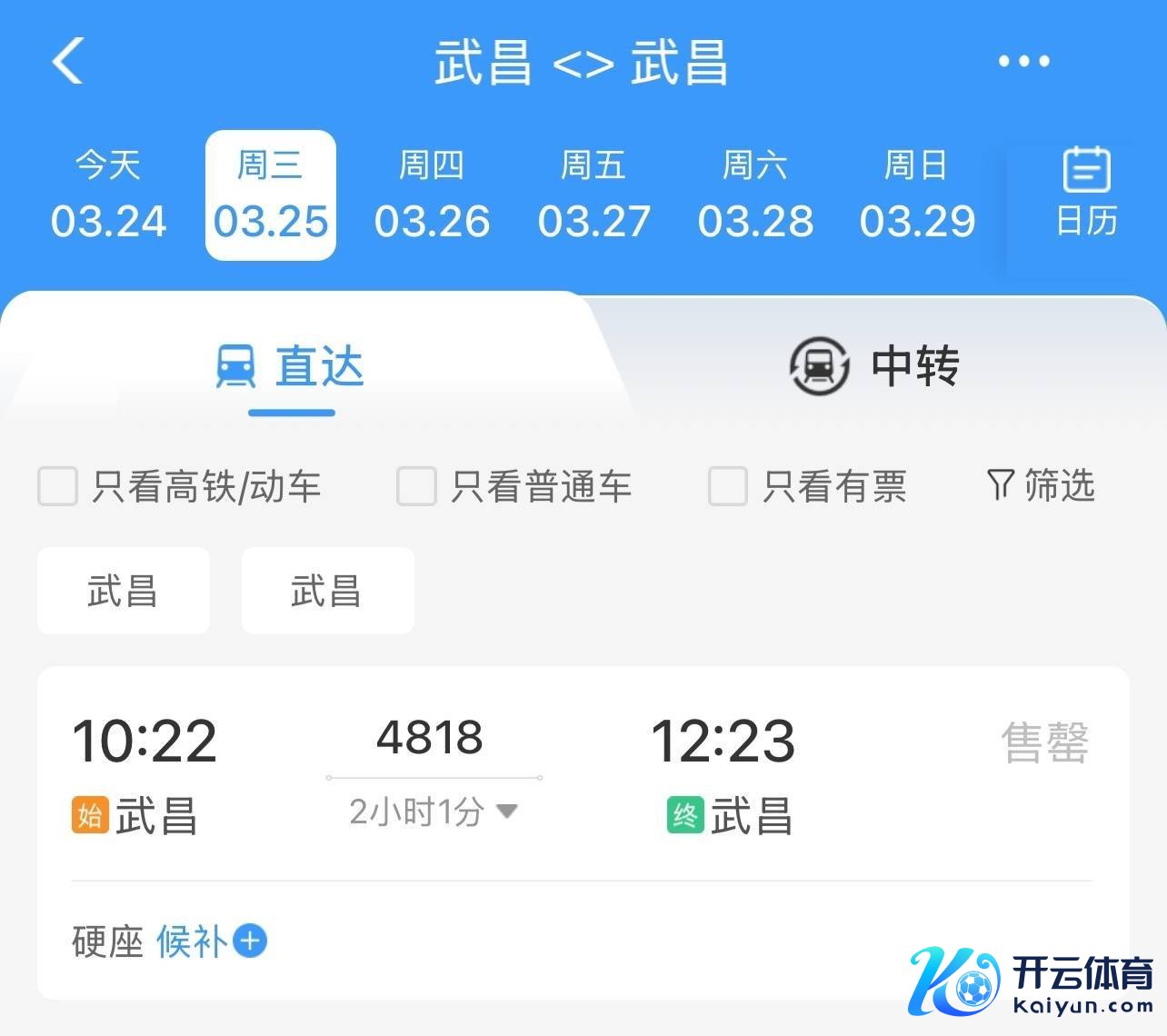 继“武汉东-武汉东”多个车次爆火之后,武汉铁路部门反映网友呼声,又怒放了“武昌-武昌”的新贯通,何况很快成为新的顶流。3月24日,极目新闻记者在12306APP看到,“武昌-武昌”的4818次列车预售到4月2日,且从3月25日到4月2日9天的车票已一说念售罄,4月3日的车票暂未开动预售。不外无谓顾忌,铁路部门照旧原意,列车将不时开行。