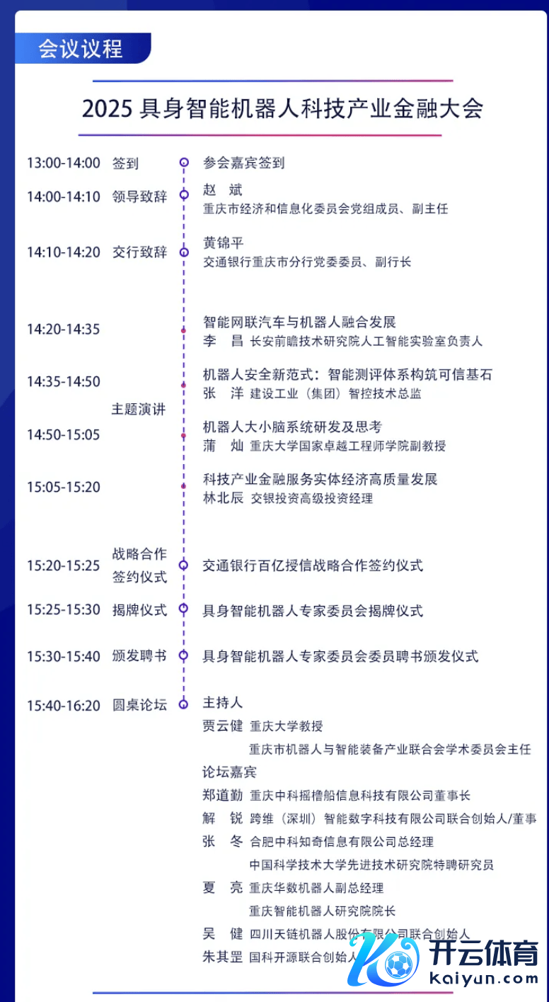 证券时报网讯体育游戏app平台,为更高质地的鼓舞机器东谈主与智能装备产业的发展,重庆市机器东谈主与智能装备聚拢会于2025年2月26日举办“2025具身智能机器东谈主科技产业金融大会暨重庆市机器东谈主与智能装备产业聚拢会年会”。会议扶助单元包括赛力斯、长安汽车、重庆建树工业。字据议程,将举行交通银行百亿授信计谋调和签约典礼、具身智能机器东谈主群众委员会揭牌典礼、具身智能机器东谈主群众委员会委员聘书颁发典礼。